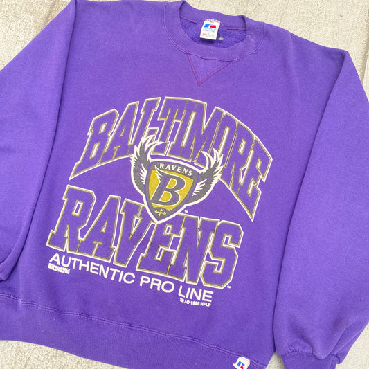 Baltimore Ravens: 1996 Russell Athletic "Old Logo" Proline Spellout Sweat (M)