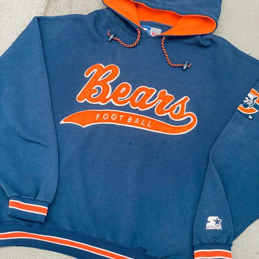 Chicago Bears: 1990's Stitched Script Spellout Starter Hoodie (XL)