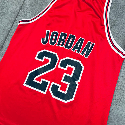 Chicago Bulls: Michael Jordan 1995/96 Red Champion Jersey (L/XL)
