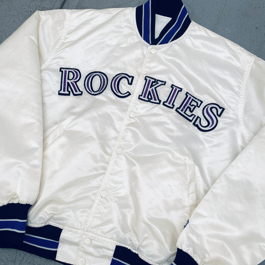 Colorado Rockies: 1990's White Satin Diamond Collection Starter Bomber Jacket (L)