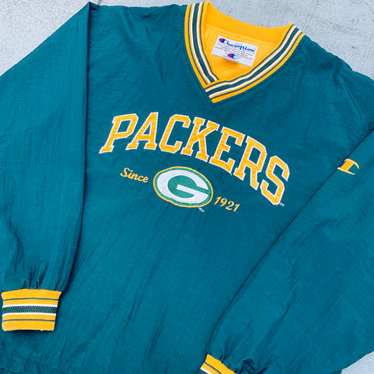 Green Bay Packers: 1990's Champion Embroidered Spellout Sideline Jacket (L/XL)