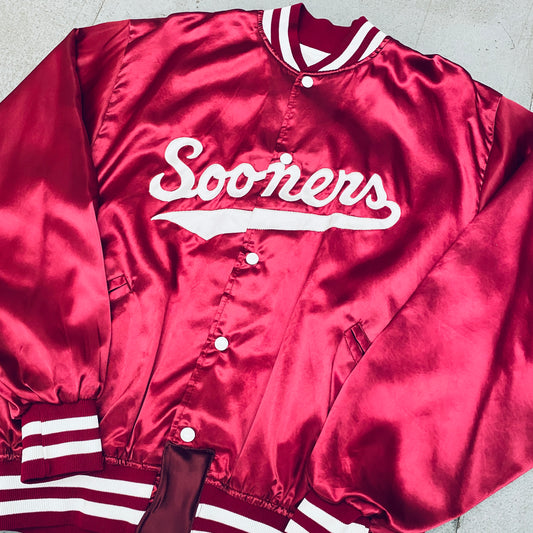 Oklahoma Sooners: 1980's Satin Stitched Spellout Bomber Jacket (L)