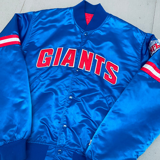 New York Giants: 1980's Satin Spellout Starter Bomber Jacket (L)