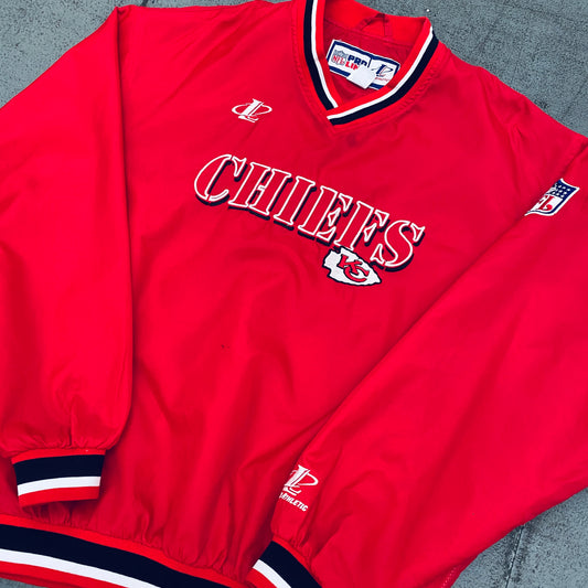Kansas City Chiefs: 1990's Logo Athletic Embroidered Spellout Proline Sideline Jacket (M)