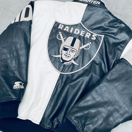 Oakland Raiders: 1990's Leather Fullzip Split Back Starter Jacket (L)