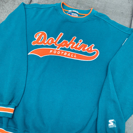 Miami Dolphins: 1990's Stitched Script Spellout Starter Sweat (XL)