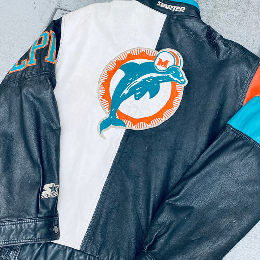 Miami Dolphins: 1990's Leather Fullzip Split Back Starter Jacket (L/XL)