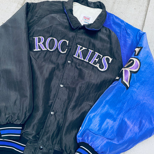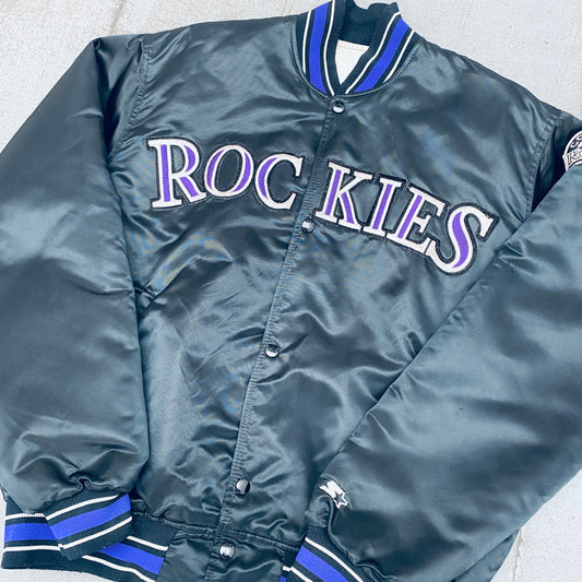 Colorado Rockies: 1990's Satin Diamond Collection Starter Bomber Jacket (L)