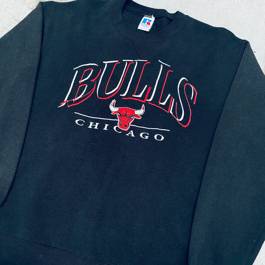 Chicago Bulls: 1990's Russell Athletic Embroidered Spellout Sweat (M)