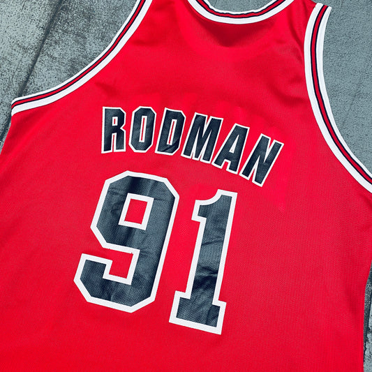 Chicago Bulls: Dennis Rodman 1995/96 Red Champion Jersey (XL)