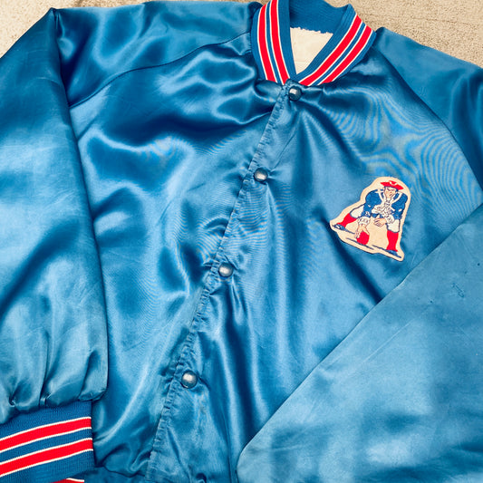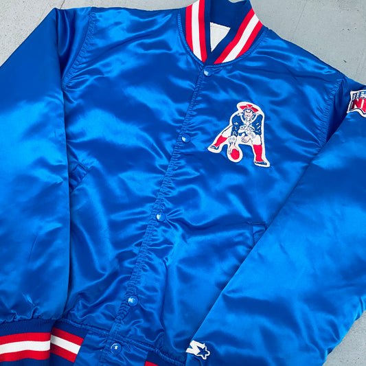 New England Patriots: 1980's Satin "Pat Patriot" Proline Starter Bomber Jacket (M)