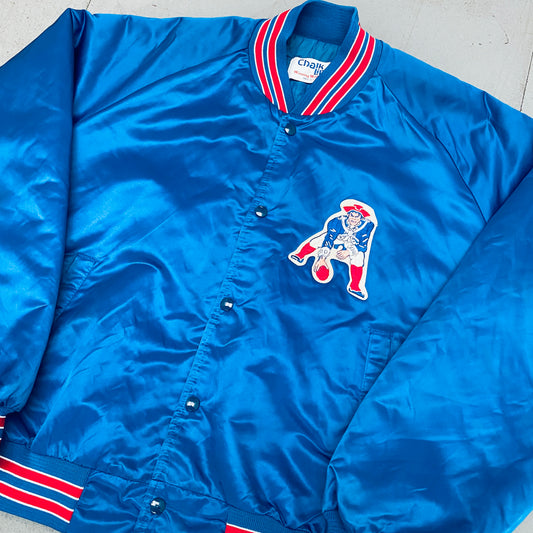 New England Patriots: 1980's Chalk Line Satin "Pat Patriot" Bomber Jacket (XL)