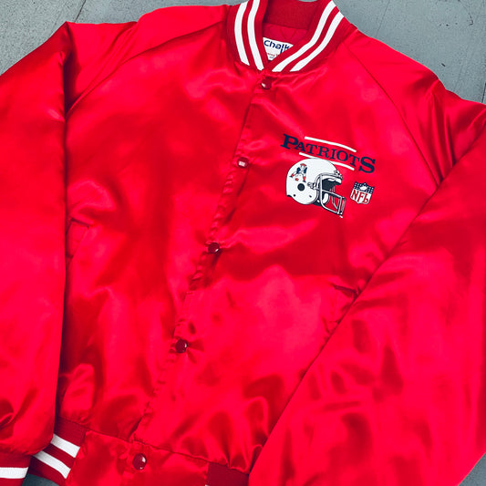 New England Patriots: 1980's Chalk Line Satin "Pat Patriot" Bomber Jacket (L)