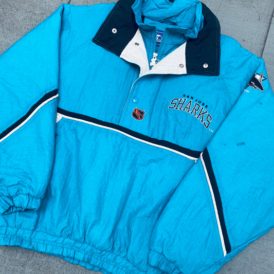 San Jose Sharks: 1990's 1/4 Zip Breakaway Starter Jacket w/ Hood (M)