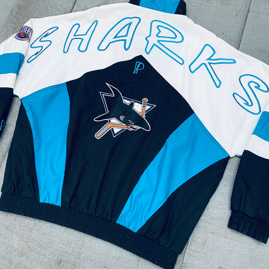 San Jose Sharks: 1990's Pro Player Fullzip HUGE Graffiti Spellout Windbreaker (XL)