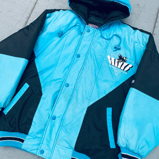 San Jose Sharks: 1990's 1/4 Zip Breakaway Starter Jacket w/ Hood (M)