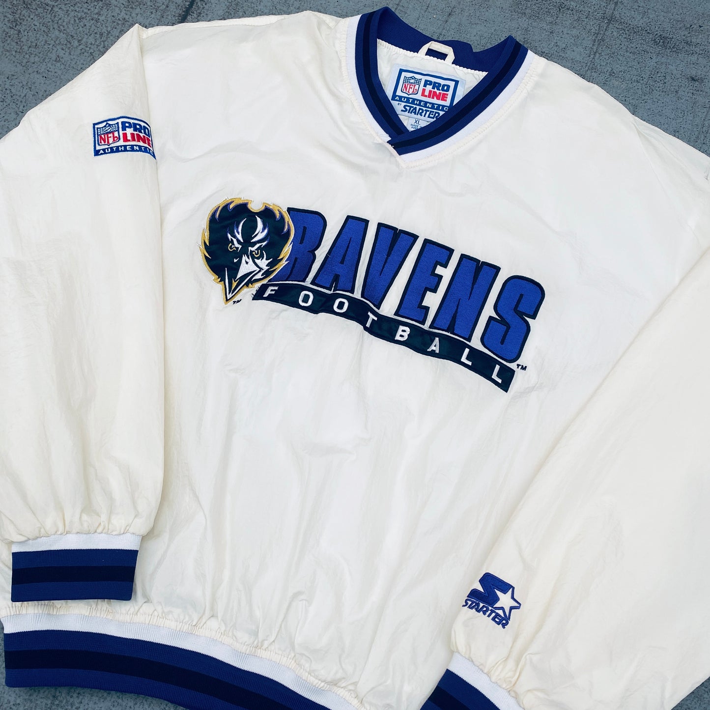 Baltimore Ravens: 1996 Whiteout Old Logo Proline Starter Sideline Jacket (XL)