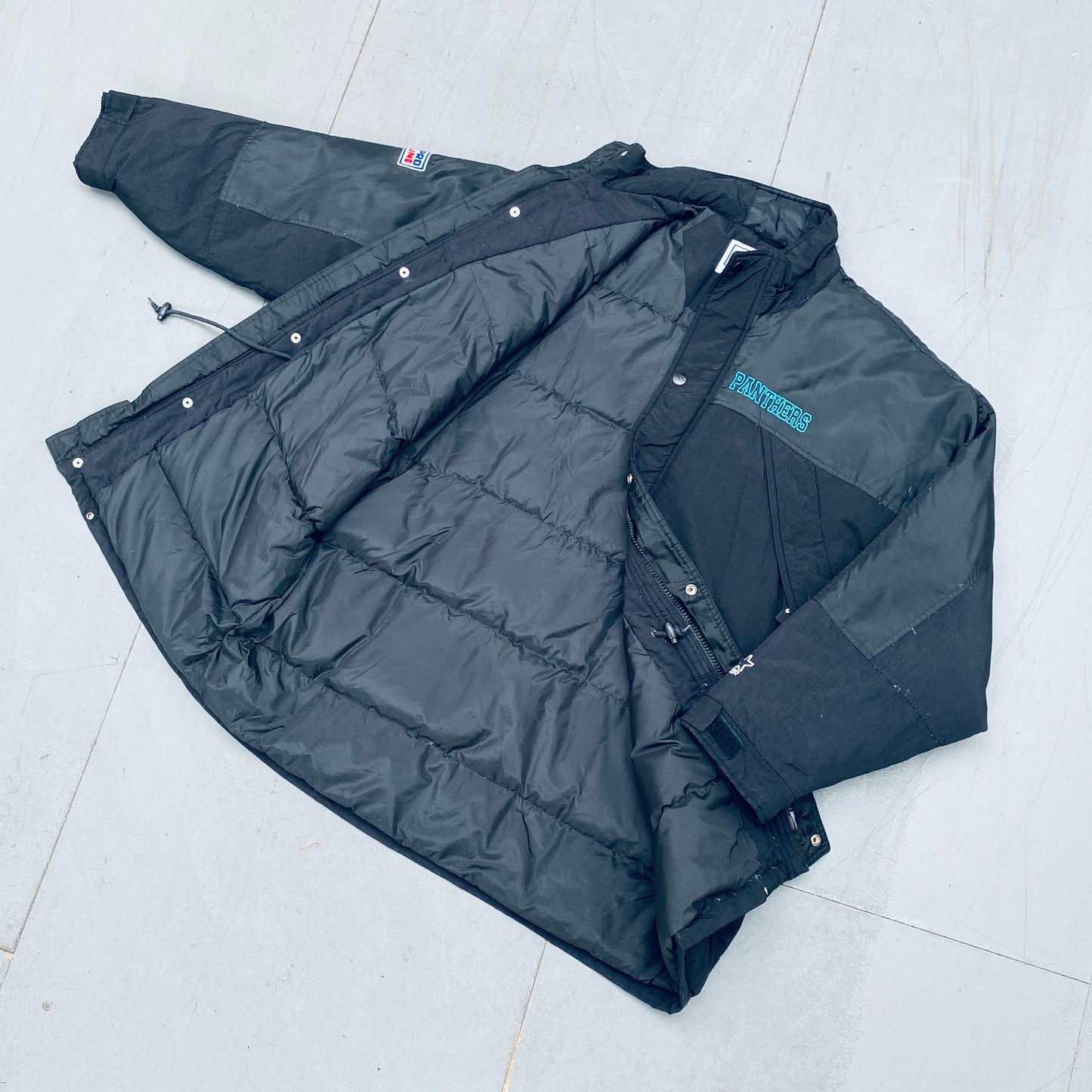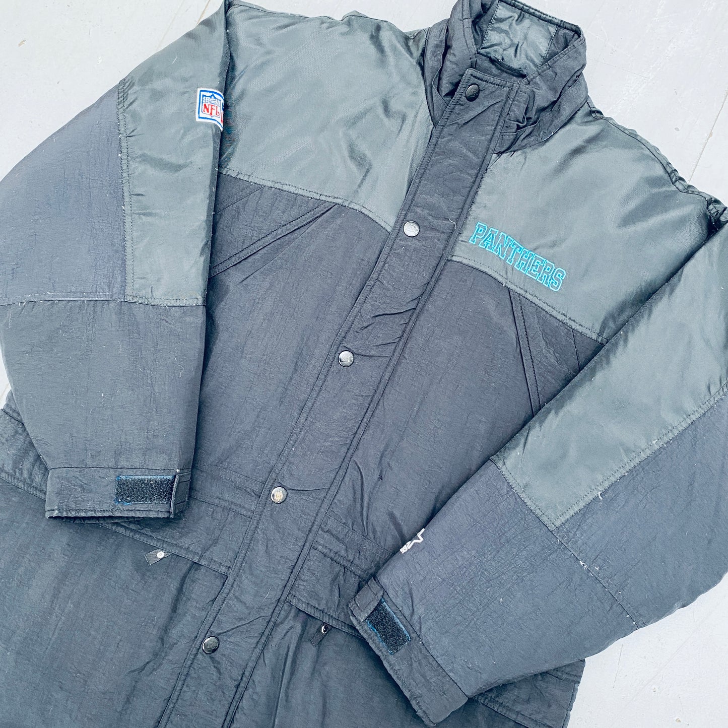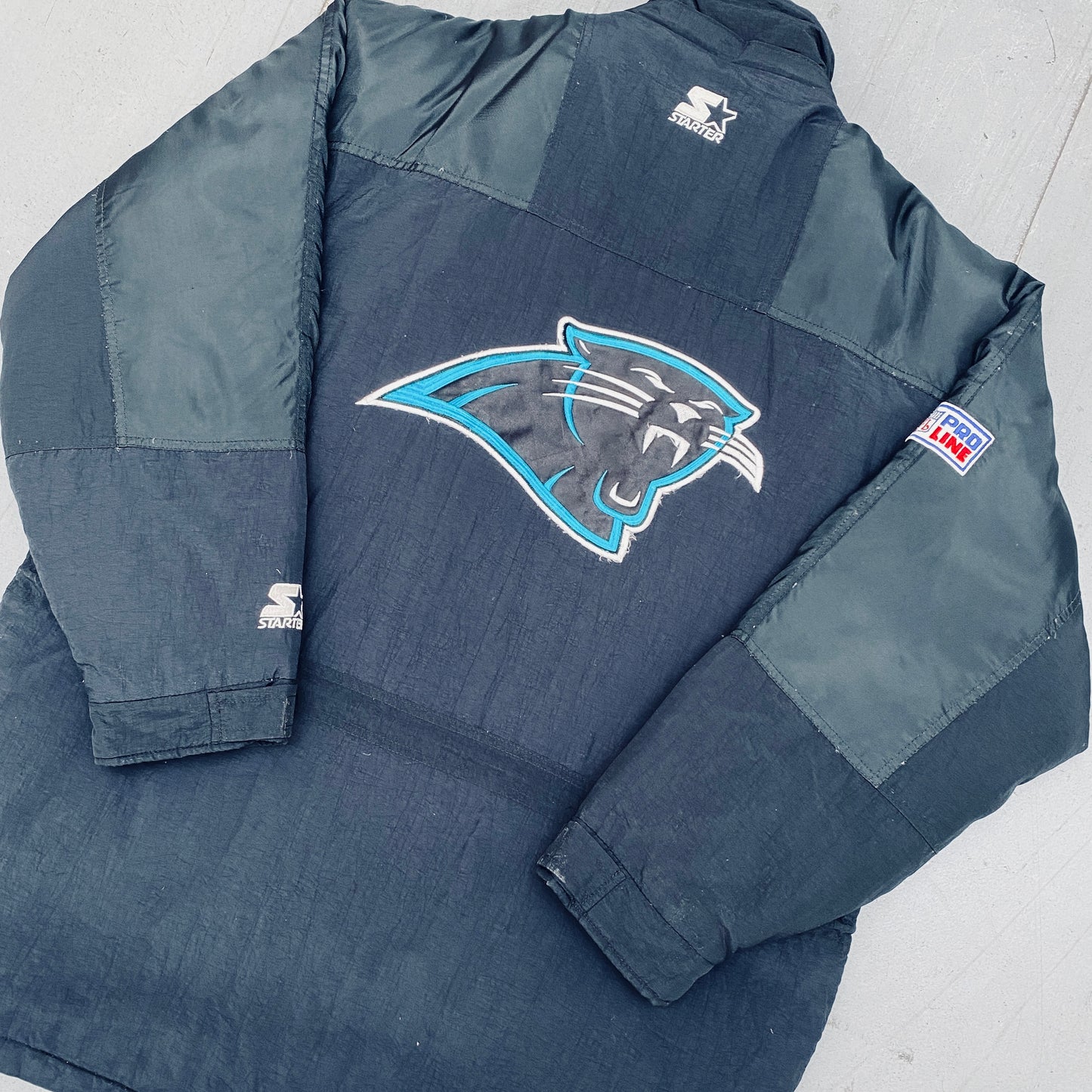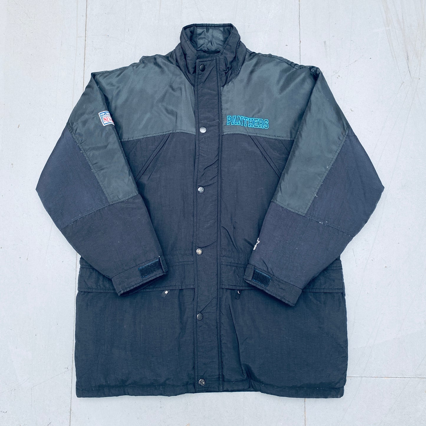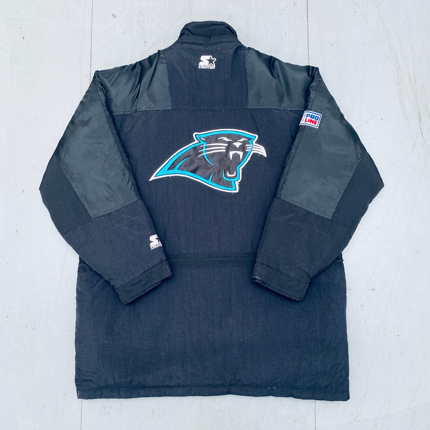 Carolina Panthers: 1990's Fullzip Feather Down Proline Starter Trench Coat (XL)