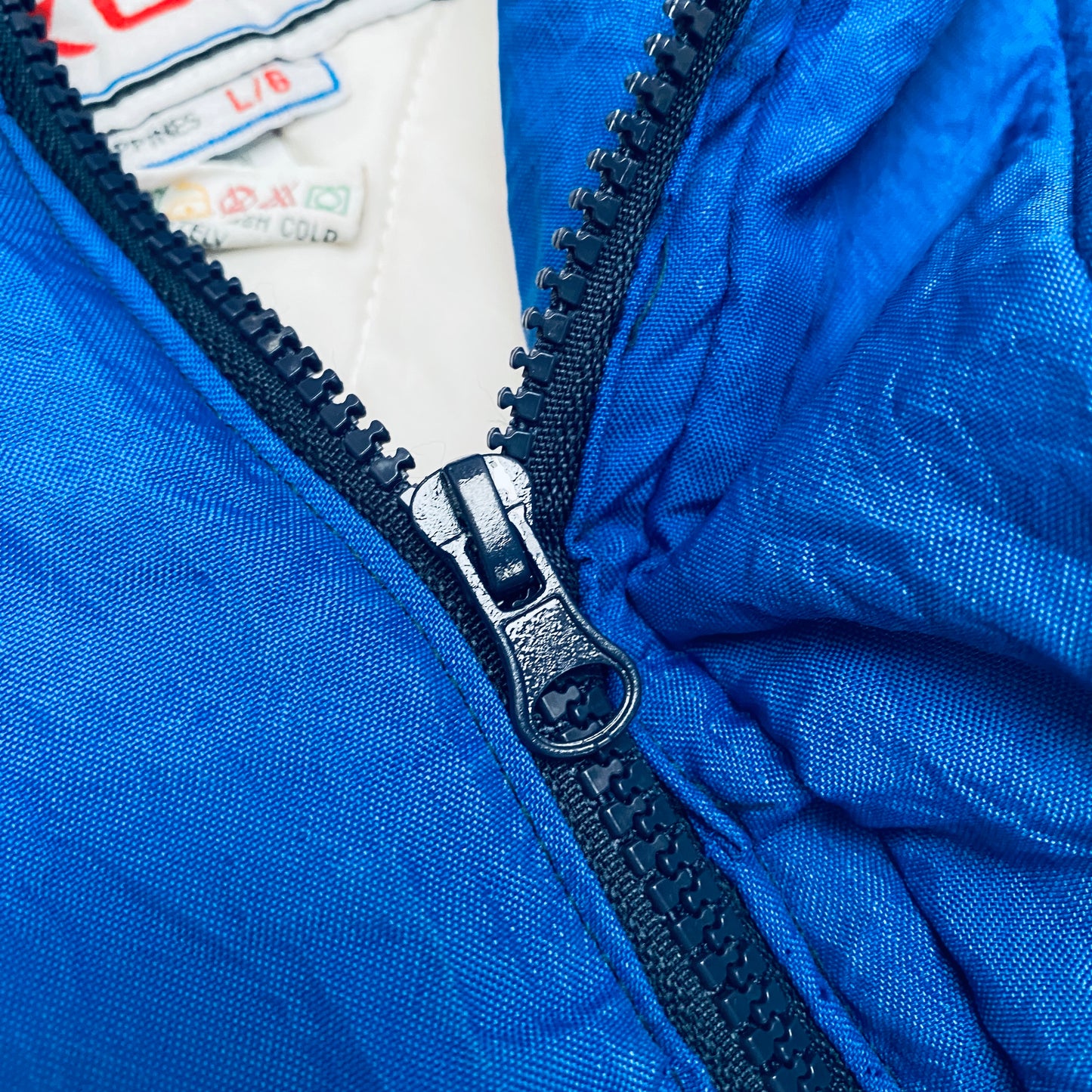 Condition: Fair - loose elastic in waist and cuffs, replacement zip pull, marks on collar, front and back, repair work on back, some colour fade, fraying and small hole on sleeves by cuff (see pics)