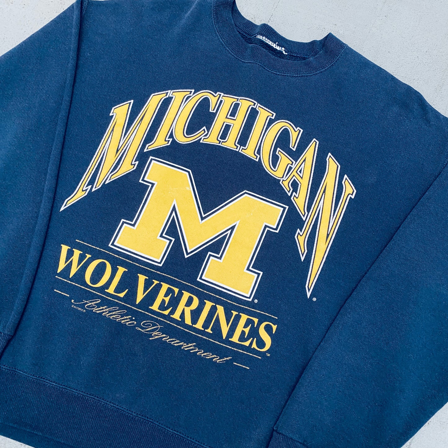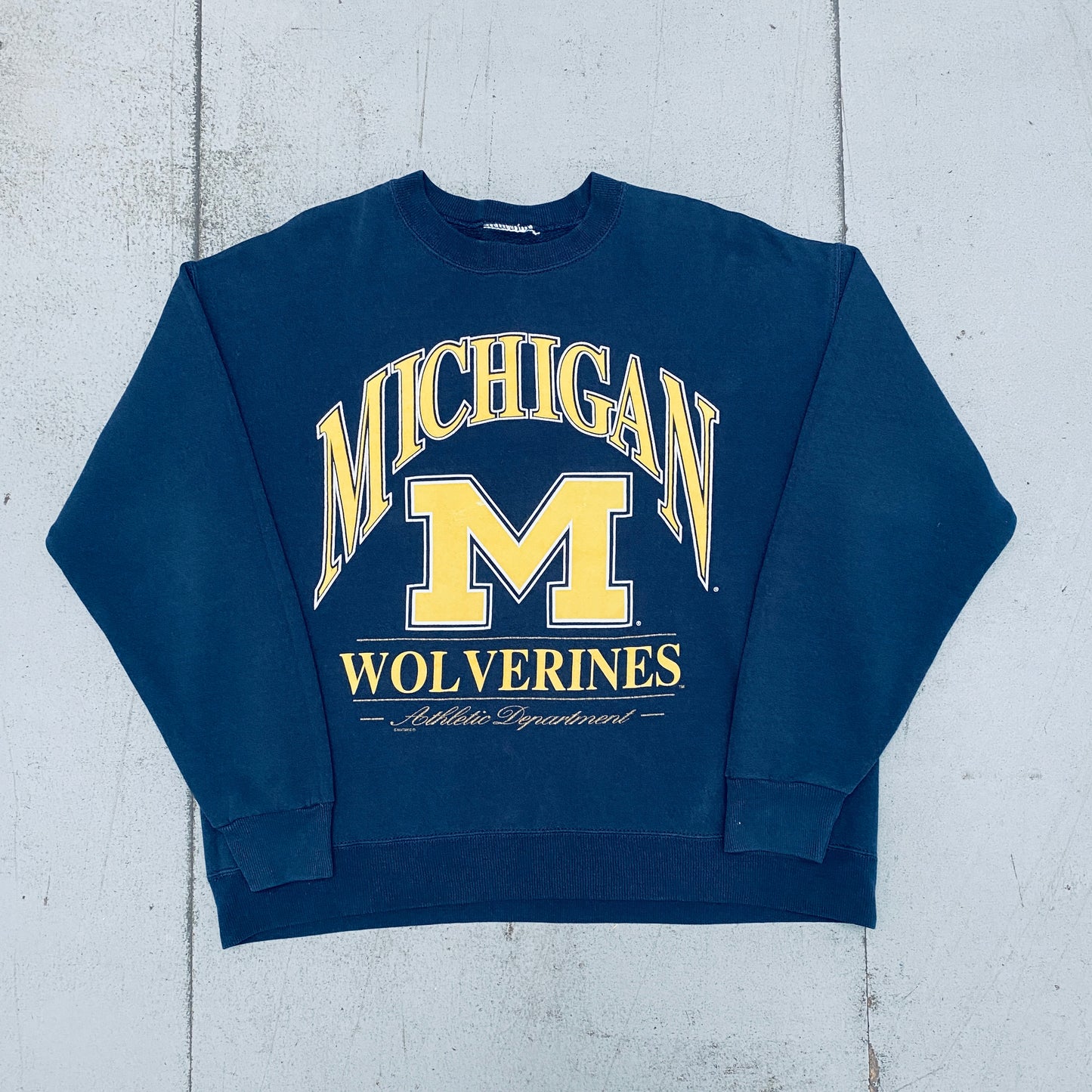 Michigan Wolverines: 1990's Nutmeg Mills Graphic Spellout Sweat (L)