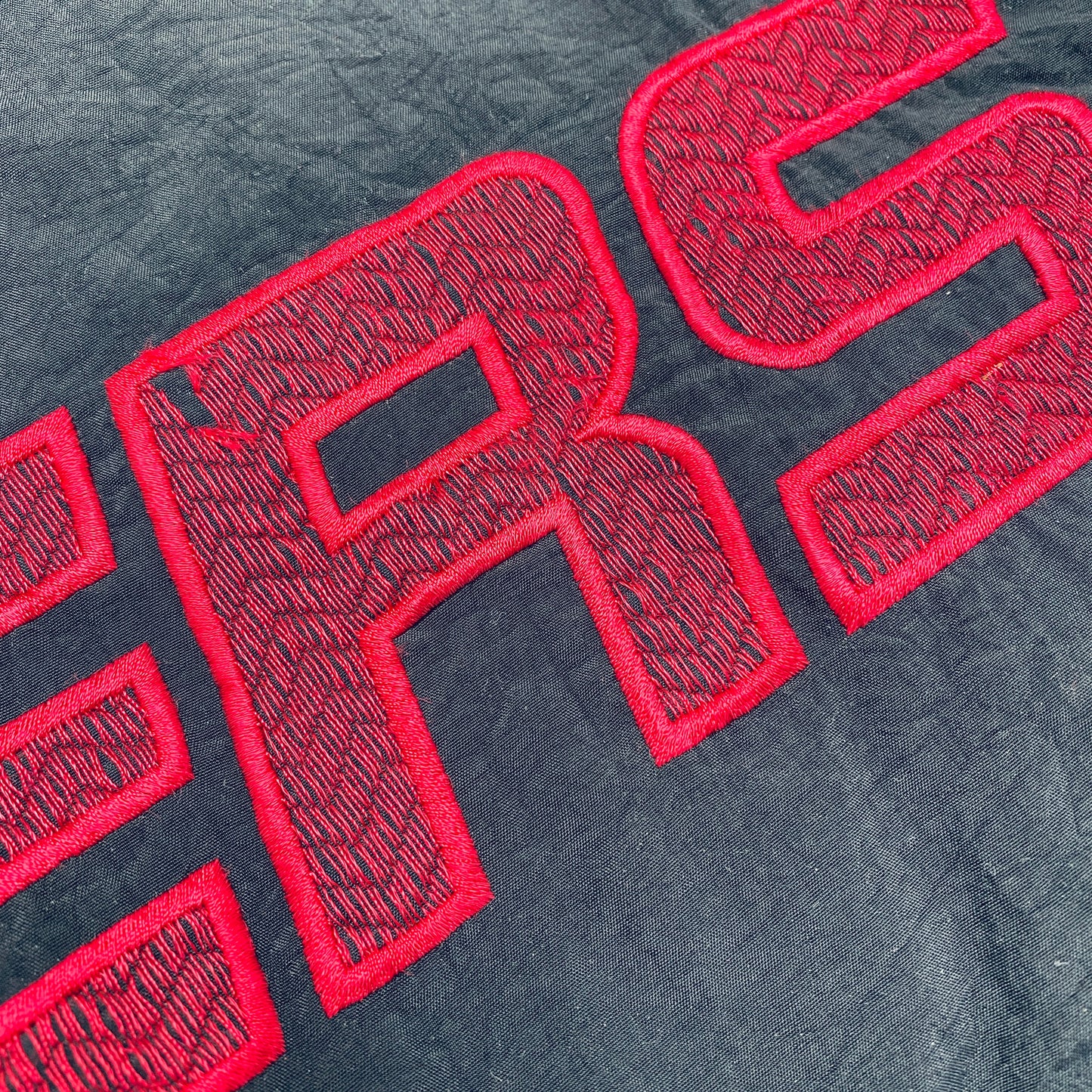 Condition: Brilliant - light marks on front and cuff, some loose threading on back spellout (see pics)