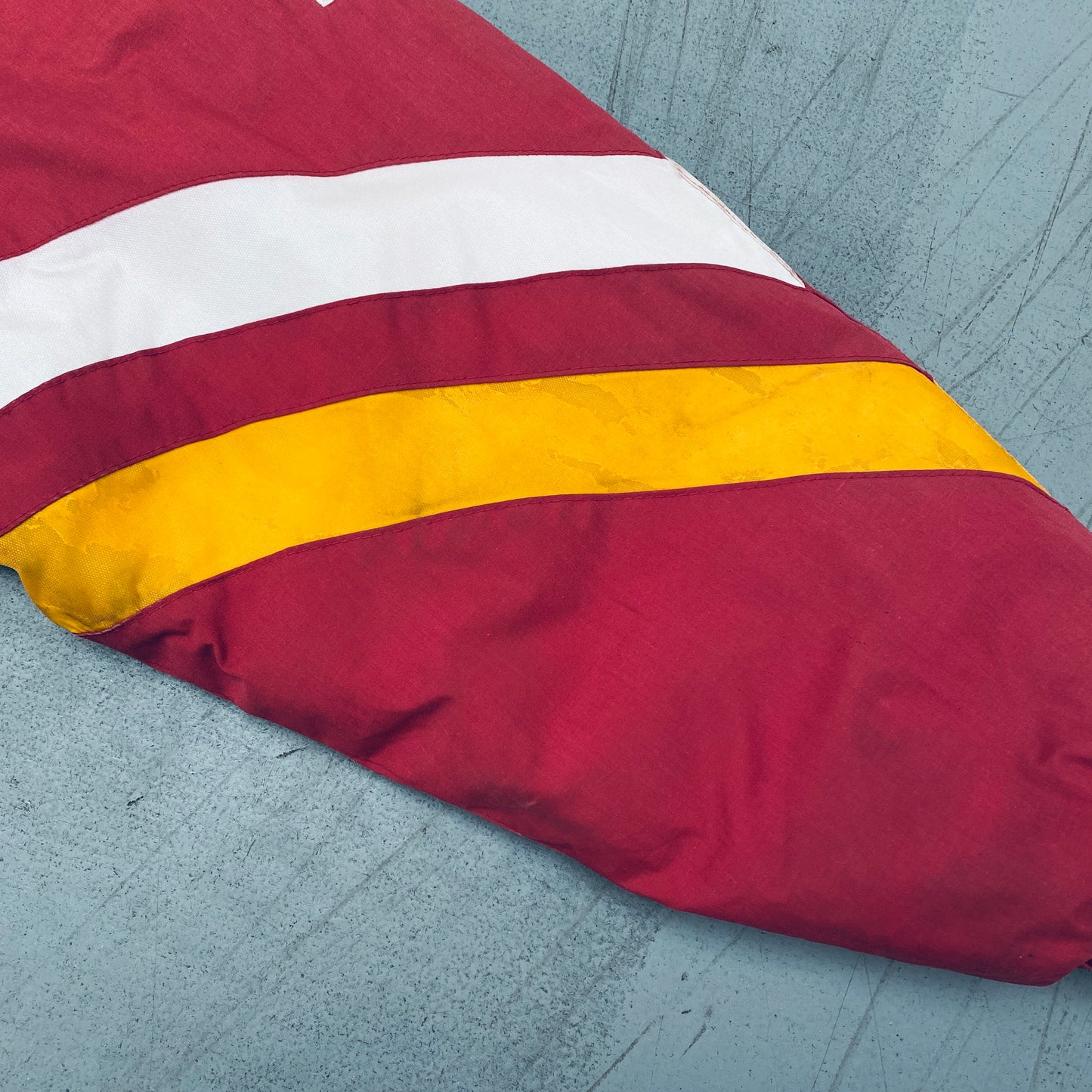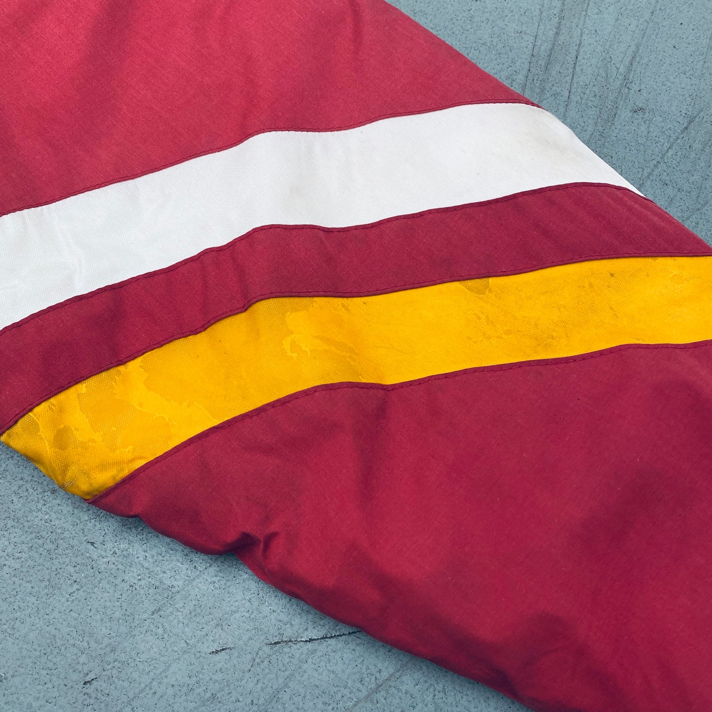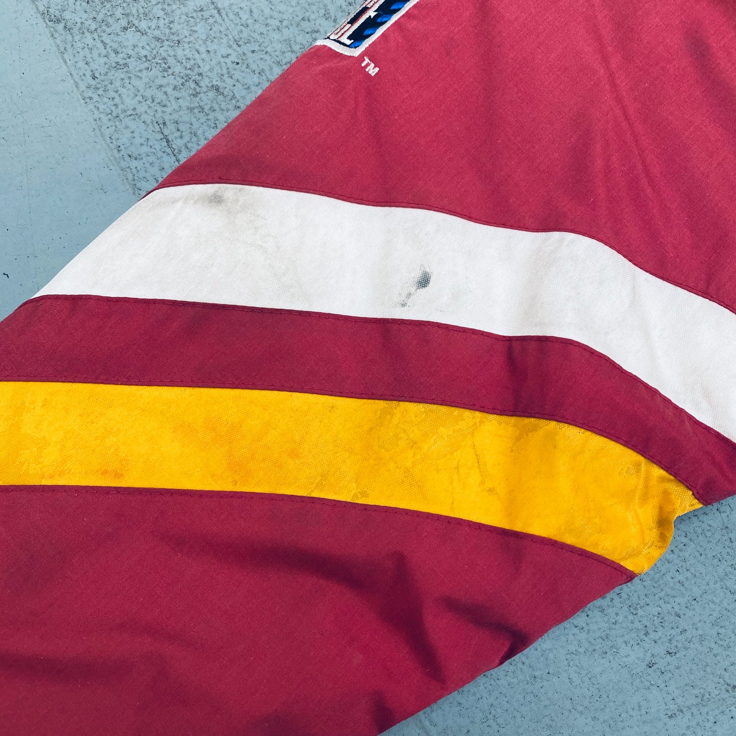 Condition: Good - marks on front, sleeve, by cuff and on back, peeling to yellow material on front, back and sleeves (see pics)